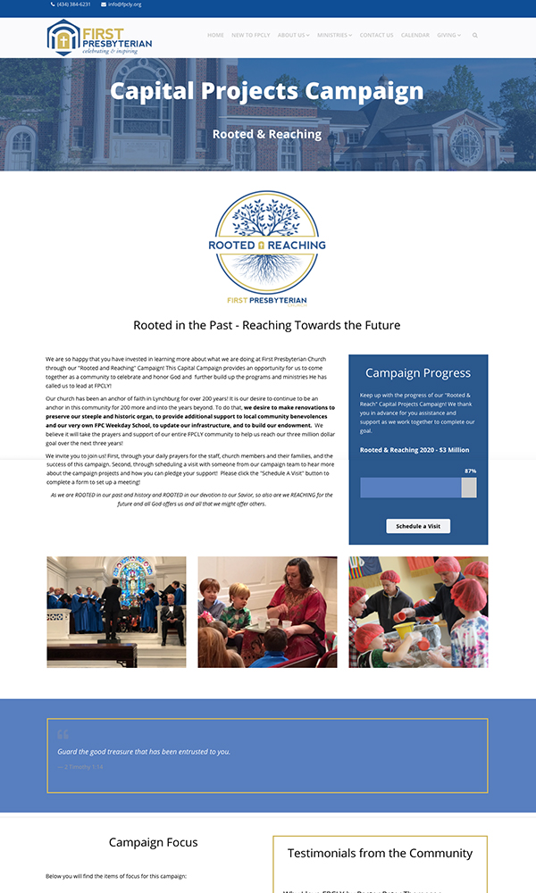 When our client, First Presbyterian Church of Lynchburg (FPCLY) reached out to let us know that they would need help promoting their Capital Campaign, we were more than ready to assist! Like many other churches in the area, FPCLY was greatly impacted by the COVID-19 pandemic.