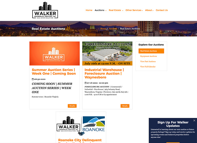 Not only does Walker Commercial do auctions, but they also do property management and real estate for both commercial and residential properties. They needed the website to showcase this in an eye-catching format while also being functional and user-friendly.
