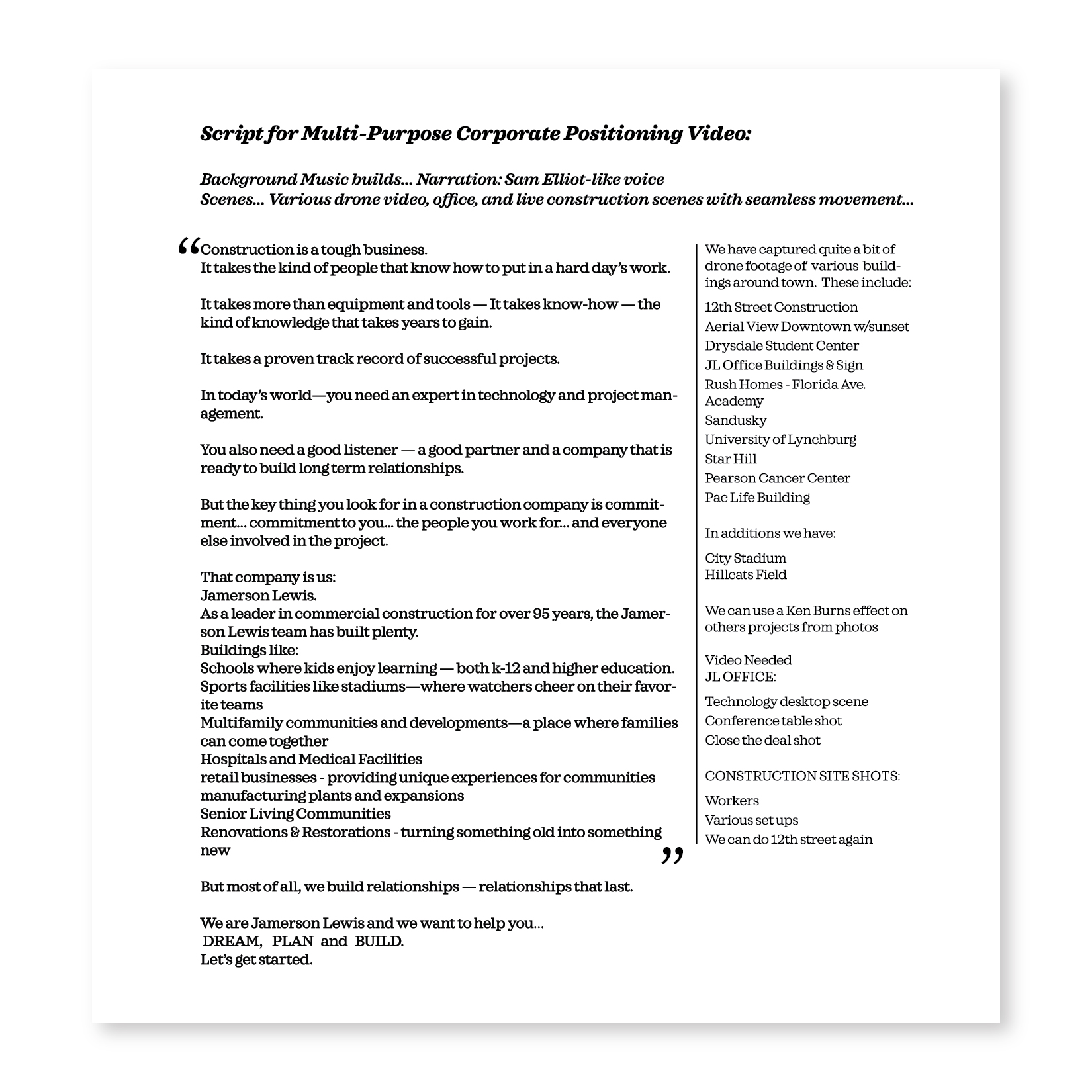 That's where we came in. We worked with Jamerson-Lewis to create a visual story that would position Jamerson-Lewis as a top construction company in the area—both to work for and to do work with.